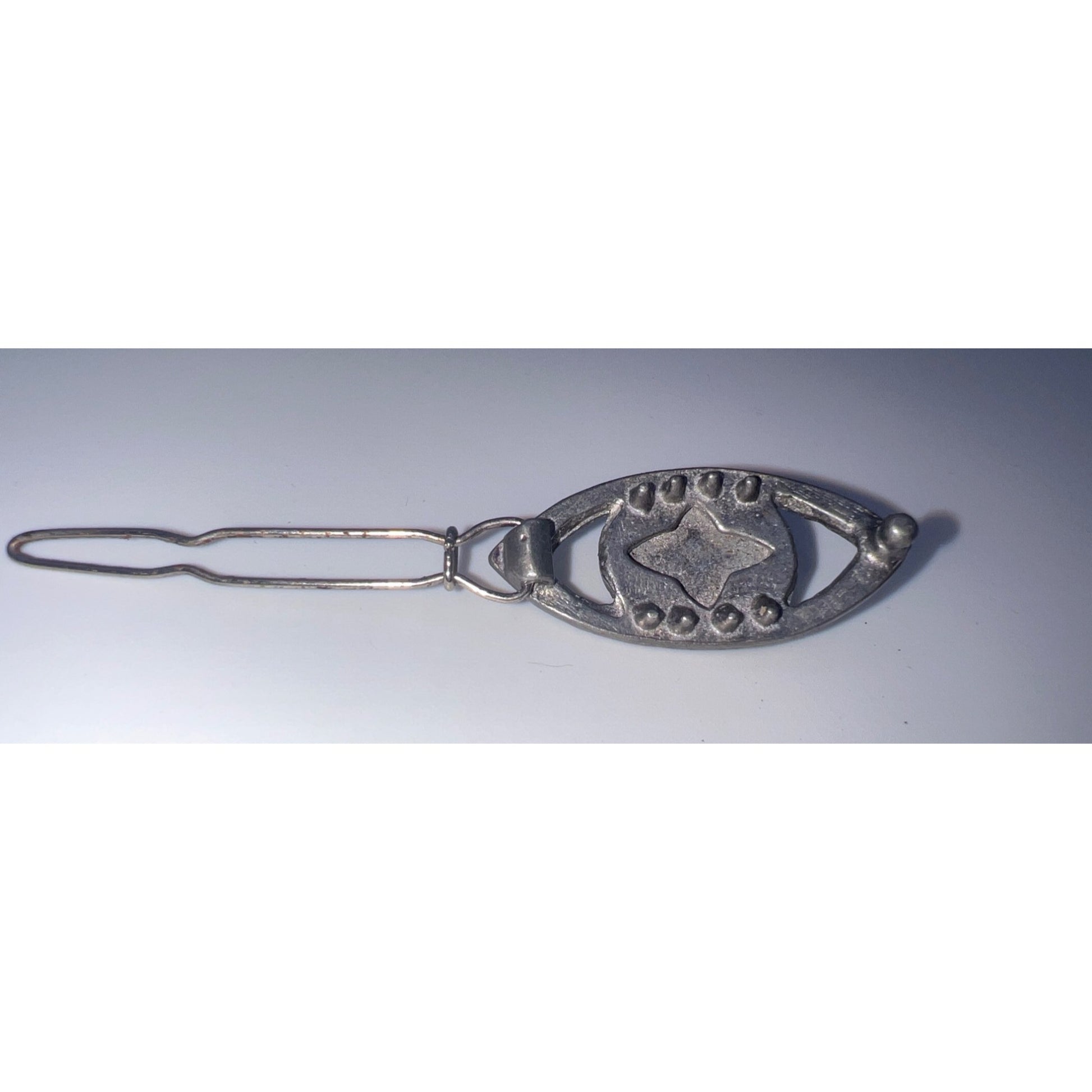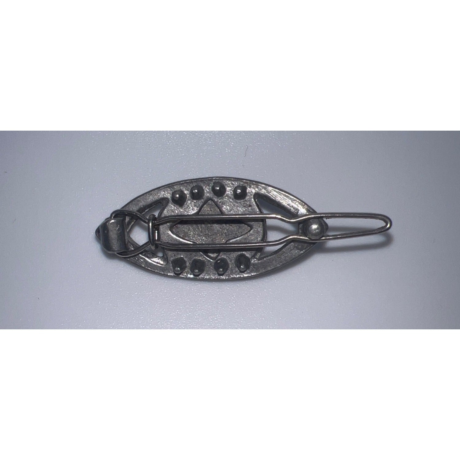 Elegant Vintage Art Deco metal hair clip featuring a stunning olive green enamel finish and sparkling rhinestone center. Perfect for adding a touch of glamour to any hairstyle. A must-have accessory for special occasions or everyday wear.