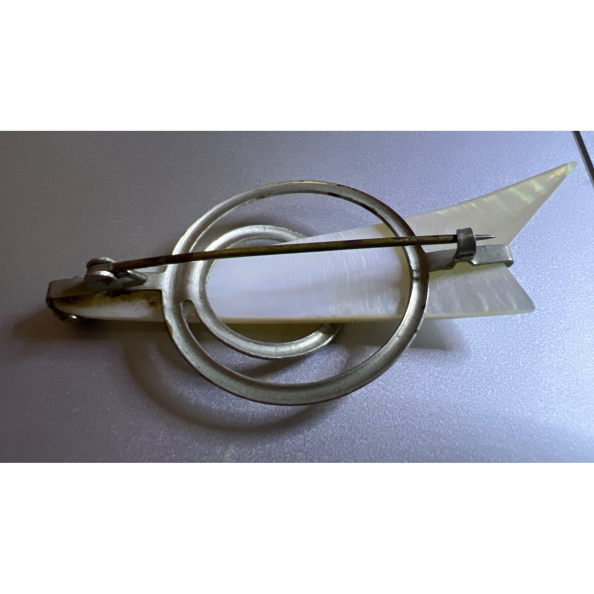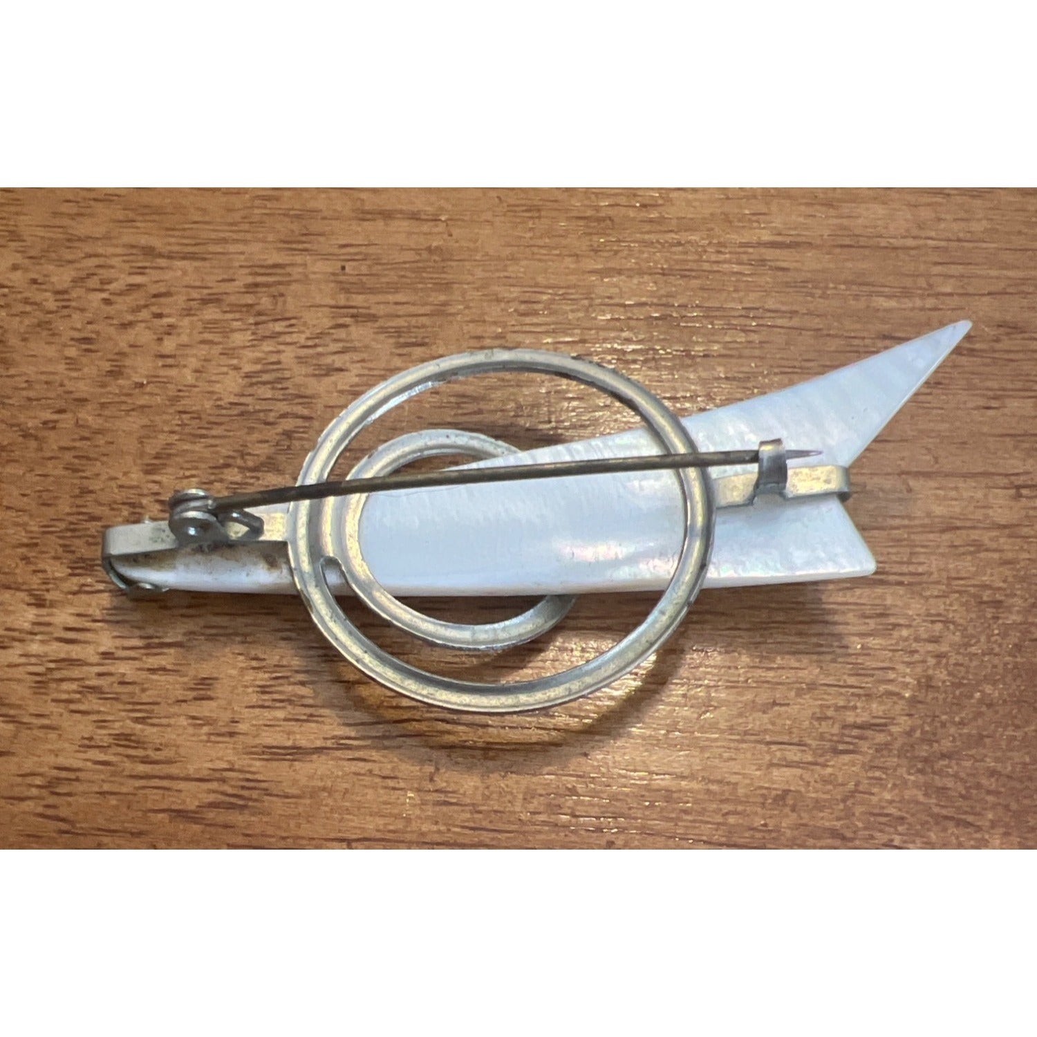Vintage Atomic Brooch MCM Space Ship Lunar Pin Mother of Pearl