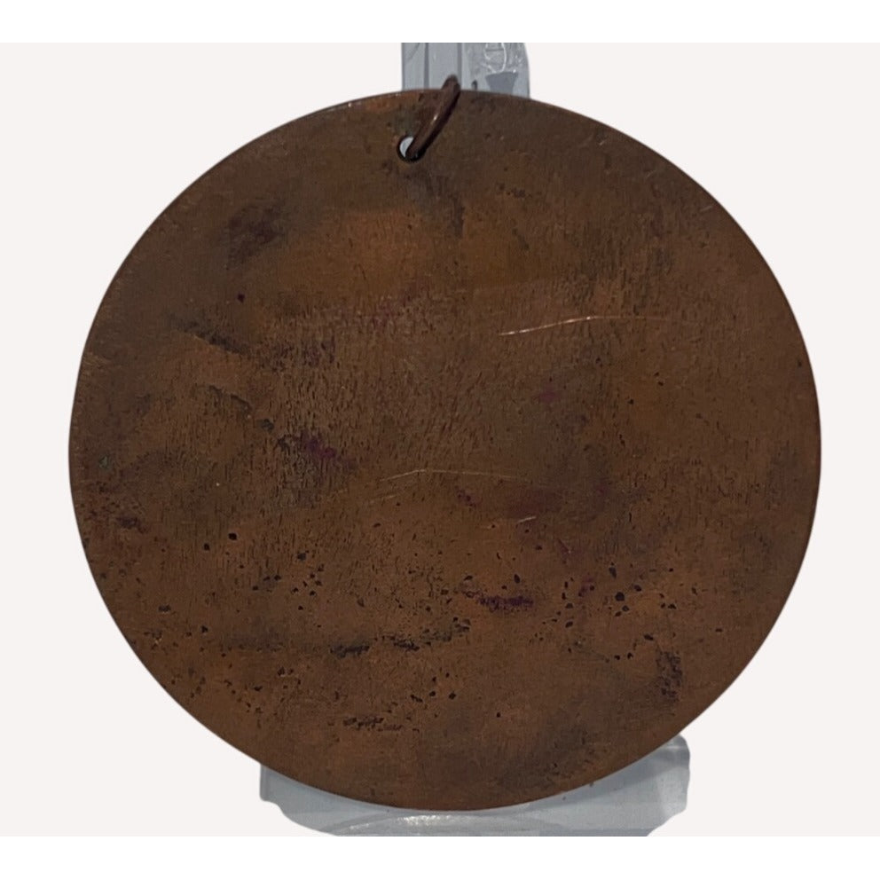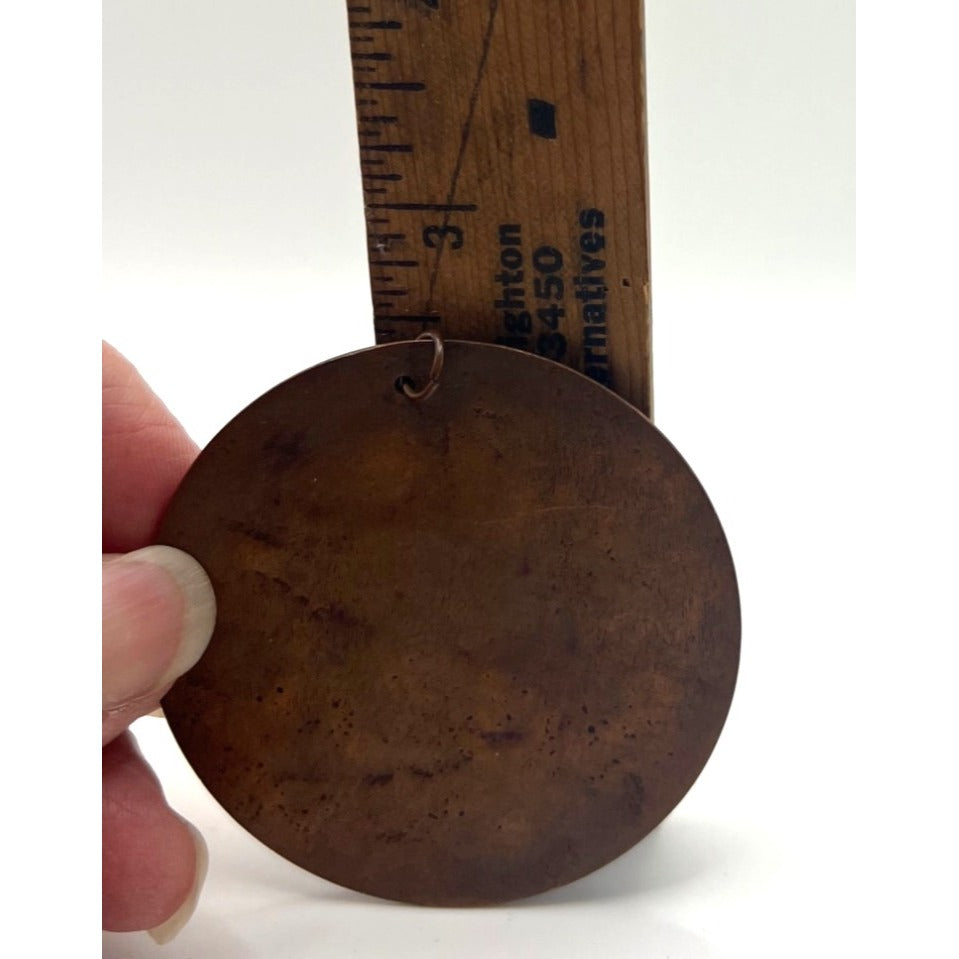 Vintage Enamel Copper Pendant Swirls Earth Moon 2.5" Necklace Jewelry