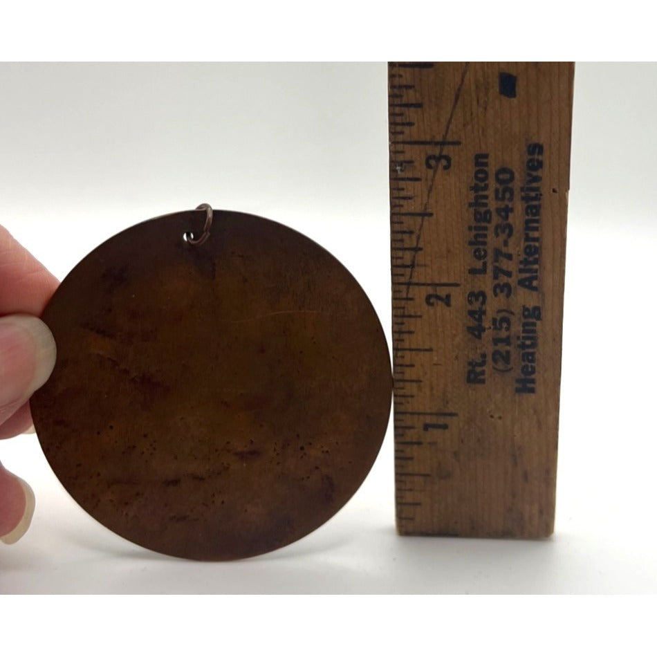 Beautiful copper and enamel pendant that has copper details on the front and enamel that looks like the earth and moon.