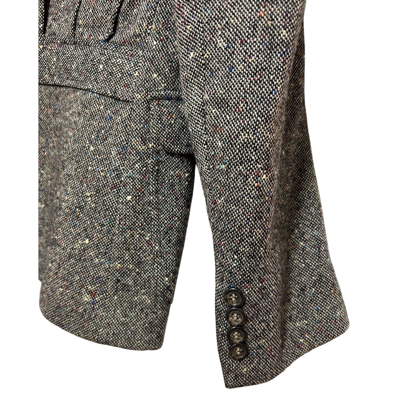 This vintage Ralph Lauren wool jacket blends timeless style with modern elegance. Its fitted blazer design and tweed fabric make it a versatile addition to any wardrobe, perfect for both casual and formal occasions. Womens Size 8, 25.5" long, 19" armpit to armpit, 23" sleeve. black with multicolor speckles Very good pre-owned condition